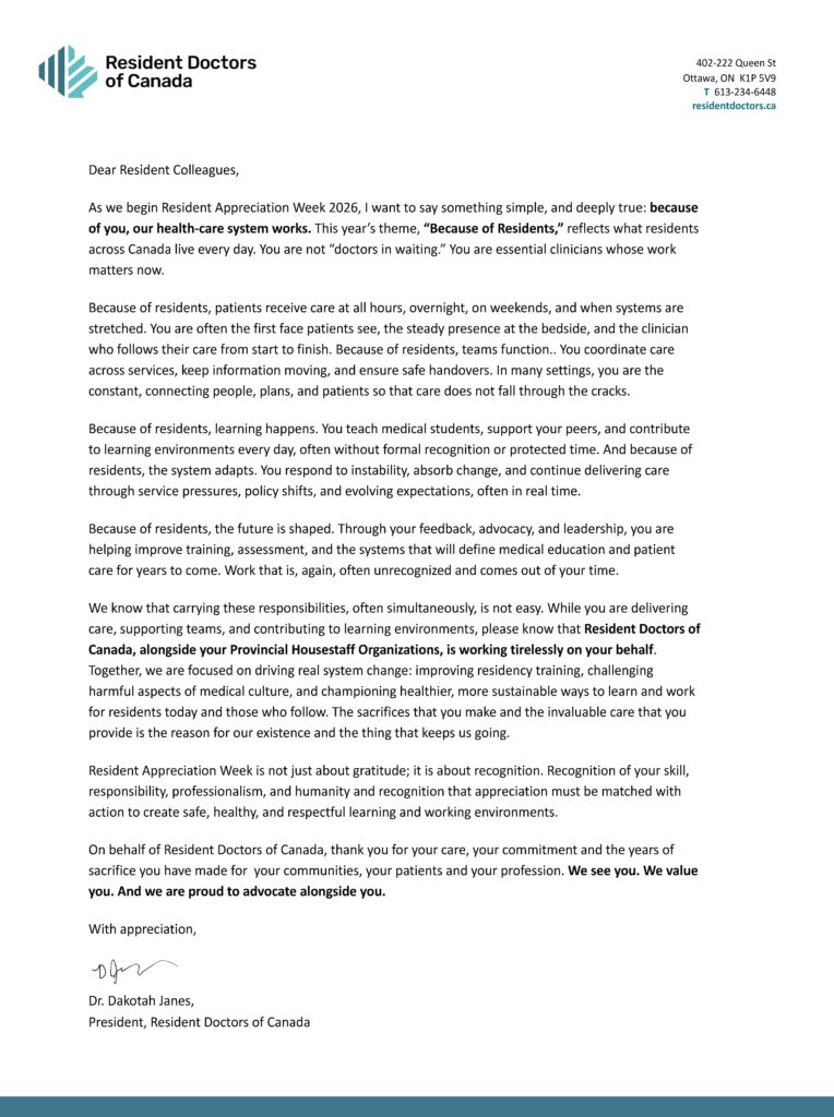 Resident Doctors Appreciation 2026 – Letter from the President